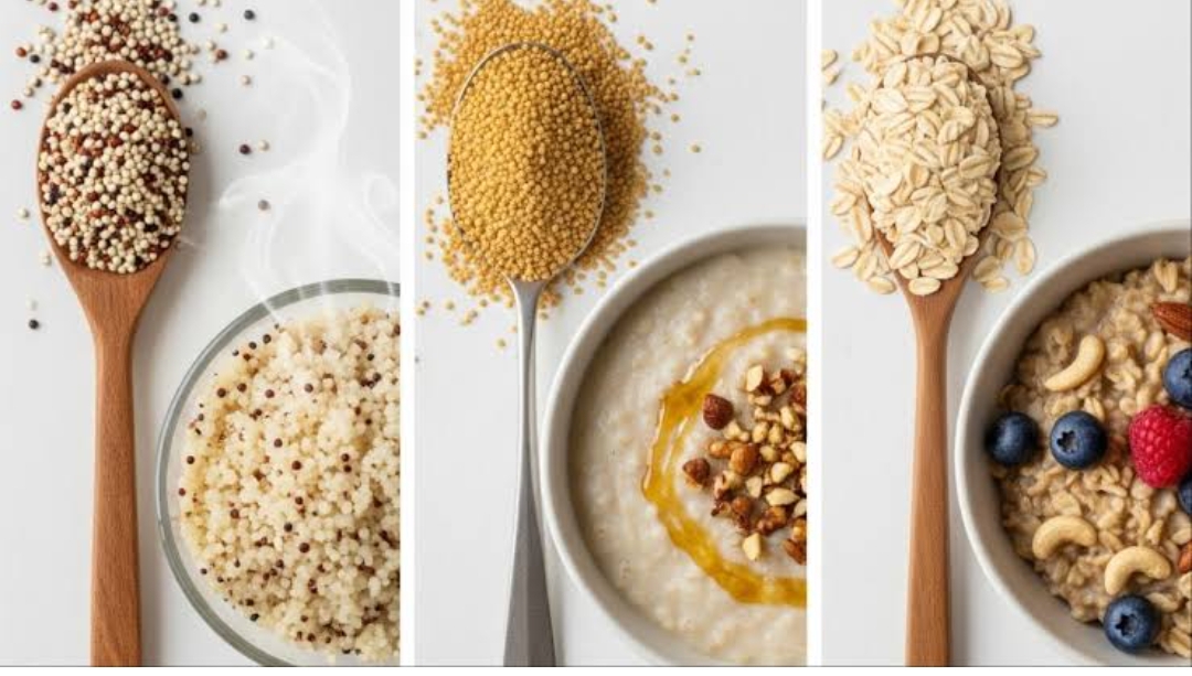 क्विनोआ, दलिया और ओट्स तीनों ऐसे खाद्य पदार्थ हैं, जिसको न्यूट्रिशन एक्सपर्ट अक्सर डाइट में शामिल करने की सलाह देते हैं। यह खाद्य पदार्थ कम कैलोरी और अधिक फाइबर वाले होते हैं, जिसके सेवन से पेट लंबे समय तक भरा हुआ महसूस होता है।