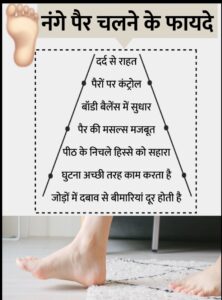 सूजन कम करना: नंगे पैर चलना शरीर की प्रतिरक्षा प्रतिक्रिया को बढ़ाता है और सूजन और दर्द को कम करता है, खासकर पैरों और जोड़ों में।