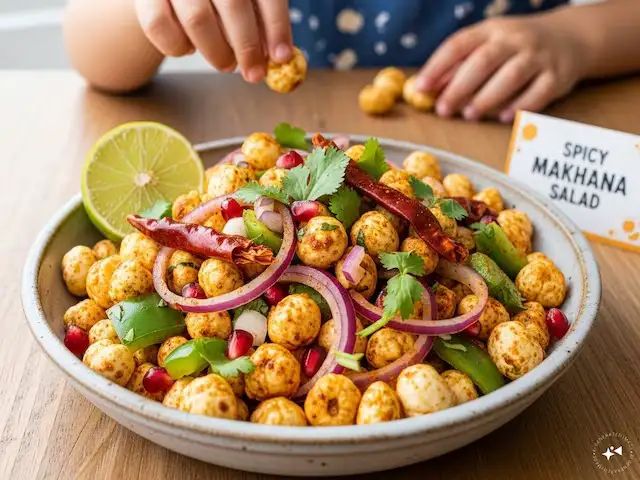 अगर आप हेल्दी खाने के शौकीन हैं लेकिन अक्सर अनहेल्दी स्नैक्स खा लेते हैं, तो ‘स्पाइसी मखाना सलाद’ आपके लिए एकदम सही है। यह सलाद न सिर्फ हल्का और पौष्टिक है, बल्कि बनाने में भी बेहद आसान है।सिर्फ 5 मिनट में तैयार होने वाला यह स्नैक क्रंची, मसालेदार और फ्रेश सब्जियों से भरा होता है। चाहे बच्चों के लिए शाम का नाश्ता हो या अपने खुद के मुंह में टेस्टी और हेल्दी चीज डालने का मूड, यह सलाद हर किसी को पसंद आएगा। मखाने अपने आप में प्रोटीन और मिनरल्स से भरपूर होते हैं और जब इन्हें हल्के मसालों और नींबू की ताजगी के साथ मिलाया जाता है, तो इसका स्वाद और भी बेहतर हो जाता है। चलिए जानते हैं, इसे कैसे बनाया जाए।
