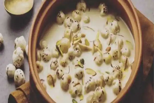 1. मखाना रायता-।:मखाना रायता ना सिर्फ खाने के स्वाद को बढ़ाने बल्कि, सेहत में भी कमाल है. इस रायते का सेवन करने से पाचन को बेहतर बनाने में मदद मिल सकती है. इसे दही, मखाना, काला नमक से घर पर आसानी से बनाया जा सकता है.