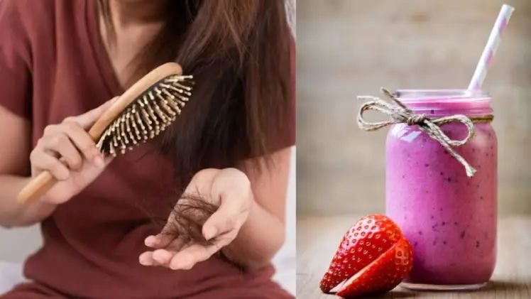 - बाल झड़ने का कारण शरीर में पोषक तत्वों की कमी, स्ट्रेस, और हार्मोनल चेंज होते हैं। बाल केरेटीन नाम के प्रोटीन से बने होते हैं, इसलिए जितना ज्यादा प्रोटीन शरीर को मिलेगा, बाल उतने ही घने-मजबूत बनेंगे।स्मूदी को रोजाना पीने से बाल झड़ना काफी हद तक कम होगें। नाश्ते में 15 दिन तक लगातार लें, तो फर्क साफ नजर आएगा। यह स्मूदी शरीर को वो सारे न्यूट्रिएंट्स देती है जो बालों की जड़ों को मजबूत करते हैं।स्मूदी को बनाने के लिए इन चीजों की जरूरत :