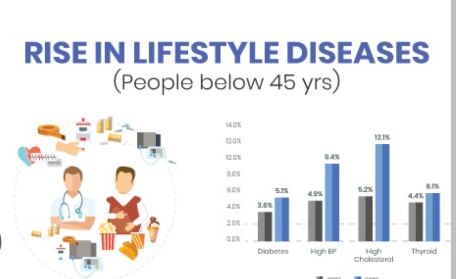 हालिया सर्वे के मुताबिक देश में लाइफस्टाइल यानी जीवनशैली से जुड़ी बीमारियों का तेजी से विस्तार हो रहा है, जबकि संक्रामक रोगों में लगातार गिरावट दर्ज की गई है। यह बदलाव केवल आंकड़ों का खेल नहीं है, बल्कि भारत की बदलती जीवन शैली, खान पान और शहरीकरण की कहानी भी कहता है। आइए जानते हैं कैसे बदल रही भारत में सेहत की तस्वीर…